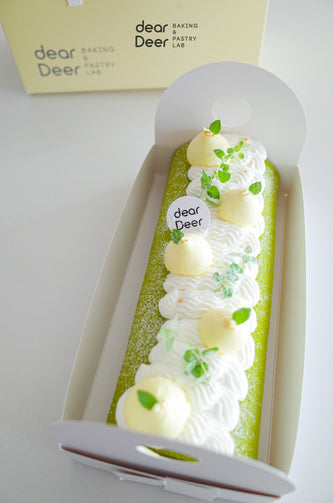 Matcha cream, honey yuzu cream, and matcha chiffon cake.